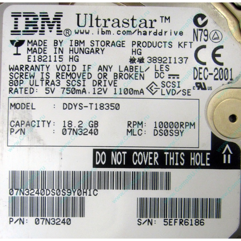 БУ жесткий диск 18.2Gb IBM Ultrastar DDYS-T18350 Ultra3 80pin 10000rpm.