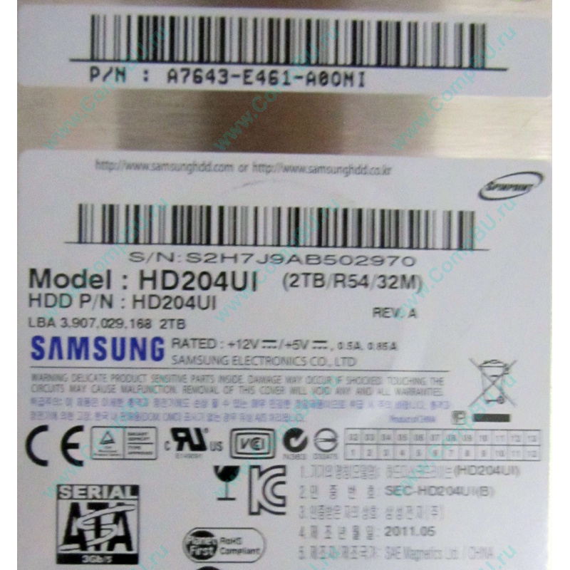 Б/У жёсткий диск 2Tb Samsung HD204UI 32Mb cache 7200rpm SATA.